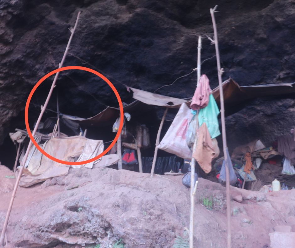 यह पहला रास्ता है जोकि शिवलिंग की तरफ जाता है, जाने के लिए लेट-लेट कर/ झुक-झुक कर जाता है क्योंकि अंदर जाने के लिए कोई रास्ता नहीं है, आस- पास सापों का वास होता है। बाबा जी बताते हैं “साँप काटते है लेकिन शिवलिंग तक जाने में ऑक्सीजन नहीं मिलती है इसलिये लोग नहीं जा पाते”।